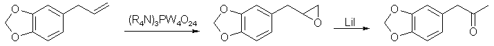 Safrole can be directly oxidized to a terminal epoxide with aqueous hydrogen peroxide in a two-phase system, using a special PTC cabable of carrying peroxide equivalents into the organic phase, consisting of a methyltrioctylammonium quaternary anion derived from Aliquat 336 and a phosphoperoxotungstate cation, the latter of which is an complex between phosphoric acid (H3PO4) and four units of tungstic acid which has been oxidized with H2O2.