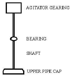 Then agitator vanes should be welded onto the interior of the pipe. There should be three or more vanes, depending upon the diameter of the pipe. For example, a one gallon size pipe section for a one mole batch scale should have four vanes to get good agitation. They should run the entire length of the pipe section, and extend about halfway in from the wall of the pipe. The agitator vanes, of course, should be made of steel, and be clean and free of paint. Once the vanes are welded in, the bottom cap can be screwed on the pipe, tightened down with a pipe wrench, and preferably welded into place. Now the cap assembly is constructed. It consists of a shaft welded onto the top of the upper pipe cap. The shaft runs to the washing machine agitator gearing, preferably with a bearing about halfway up the shaft to prevent wobbling as the agitator is going.