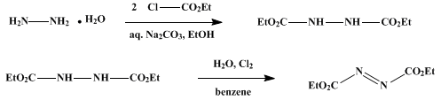 59 g. (1 mole) of 85% hydrazine hydrate in 500 ml. of 95% ethanol. The reaction flask is cooled by means of an