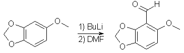 47g 3,4-Methylenedioxyphenol in 500ml dry acetone, 100g K2CO3 and 70ml dimethylsulfate was refluxed overnight. The white solid was filtered off, the filtrate concentrated, diluted with water and extracted with ethyl acetate. The organic layer was wahed with NaHCO3 solution and water, dried over MgSO4, and evaporated under vacuum to give 3,4-Methylenedioxyanisole. 6-Methoxy-2,3-Methylenedioxybenzaldehyde