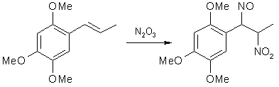 In the 1930's, Victor Bruckner began to explore the possibility of using pseudonitrosites as an intermediate in the synthesis of substituted 1-phenyl-2-amino-propanols, and in his articles he also included improved syntheses of several pseudonitrosites from propenylbenzenes, as well as studies on the pseudonitrosites themselves. One of the most useful reactions he investigated was the basic hydrolysis of propenylbenzene pseudonitrosites, yielding the corresponding beta-nitro derivatives of the propenylbenzenes. This route offered several advantages over the known nitration of alkenes with tetranitromethane, which is expensive, toxic and explosive. In his papers on pseudonitrosites, Bruckner described several experiments with asarone4, methylisoeugenol and isosafrole5, isoeugenol6 and anethole7. In the experimental part below, some freely translated parts of his work is included.