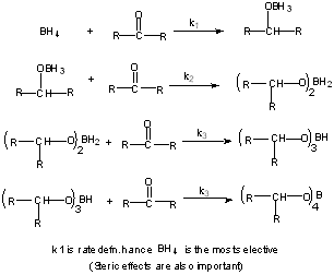 NaBH4 similar mechanism but different relative rates.