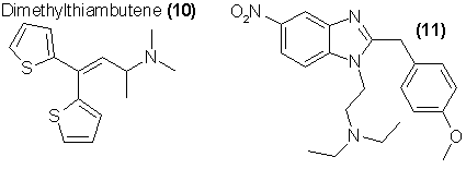 There is no reason to expect that all materials that might appear as potential heroin substitutes must be based on the structure of morphine. Many of the very active compounds such as meperidine and methadone have only the most remote resemblance to the parent alkaloid. Many compounds have sprung forth with little if any relationship to known pharmacologic logic, and have been found to be analgesic (as compared with morphine) and to have, most strangely, the dependence-producing capability of morphine. For example, dimethylthiambutene (10)34 is clinically well compared with meperidine38. Yet this material achieved illicit usage in Japan and provided clear demonstrations of addiction27.