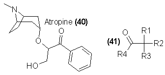 A third class of compounds is related to atropine (40). This group is largely synthetic and is represented by a large number of analogs of high potency. All three of these classes of hallucinogenics are distinct not only in their chemical nature but in their pharmacologic action as well. The indoles (DMT, Harmaline, LSD) are characterized by the generation of distortions and illusions that appear to arise from within the subject. These are changes of an intuitive and interpretive nature. The phenethylamine compounds (mescaline and analogs) lead to sensory changes, perceptual syntheses, or hallucinations involving the external world. The atropine analogs under discussion here are quite different in that they generally lead to visual and auditory phenomena that are artificial in their sources, and the illusions and hallucinations experienced are frequently beclouded by amnesia. These are disruptive and confusing agents, and have been investigated mainly with this reversible disability as a goal.