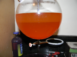 Anyways, a red oil was distilled.  Suspected first 20ml out of 200ml was iso, which tainted the color.  This is suspected, since the distillation head showed a golden/green oil soonafter but distillate flask was never changed. arg!.  29.5" vac 140c first drop came over, majority came over at 150c.