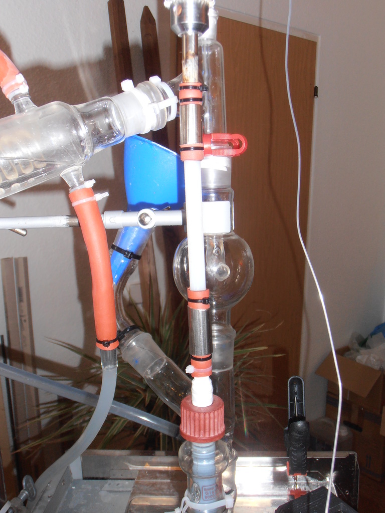 This now is true for the Al/Hg and for Fe/HCl reactions, it may or may not be true for other reactions! A stainless steel tube or rod can be used as shaft and 3mm PTFE can be cut for blades. Half-moon shaped blades running 0,5cm, not more, above the flasks bottom. in a 2l flask 7 to 8cm wide is enough, stirrer speed wont exceed 400rpm at most anyways.