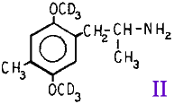 DOM-d6 (II) was prepared by reacting methylhydroquinone with dimethyl-d6 sulfate to form 2,5-di(methoxy-d3)toluene, which was converted to 2,5-di(methoxy-d3)-4-methylbenzaldehyde. The benzaldehyde derivative was condensed with nitroethane to form 2-nitro-1-[2,5-di(methoxy-d3)-4-methylphenyl]-1-propene, which was reduced with lithium aluminum hydride to DOM-d6.