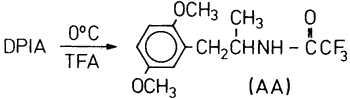 N-chlorotetrafluorosuccinimide (NCTFS) has been prepared via tetrafluorosuccinimide as described previously8. This compound was also obtained by the reaction of ammonia with tetrafluorosuccinic anhydride (Merck), isolation of the free succinic acid monoamide by HCl-treatment, and following cyclization by condensation with P2O5 under reduced pressure9. 2,5-Dimethoxyphenylisopropylamine (DPIA) was prepared by aldol condensation of 2,5-dimethoxybenzaldehyde and nitroethane using ammonium acetate in acetic acid10 and reduction of the resulting styrol to the amine (DPIA) by LiAlH4 in dry THF11. The free amine was purified by vacuum distillation [bp 120-122°C/1 mmHg] resulting in a colorless oil. Bromination of the amine gave rise to the 4-bromo-compound to be used as reference substrate for HPLC-separation (see below). Bromination was carried out with molecular bromine in acetic acid12 similar to the procedure reported. The identity and purity of the amino compounds were checked by 1H-NMR spectroscopy (Bruker, WP-80) and high pressure liquid chromatography.