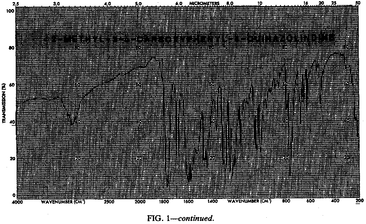 Historically, methaqualone (2-methyl-3-ortho-tolyl-4(3H)-quinazolinone) was first prepared in 19513. Studies of its metabolism in man were reported in 19604-6, and in animals in 19637. Methaqualone was introduced pharmaceutically as a nonbarbiturate, nonaddictive, "sleeping pill" in 1965. Recently (1976) metabolite detection for forensic science purposes has been reported8. Methaqualone has been controlled in the Federal Comprehensive Controlled Substances Act of 1970 (P.L.91-513) since 4 Oct. 1973 (38 FR27516). As of 27 Aug. 1984, methaqualone has been moved from Schedule H to Schedule I within the Federal Act.