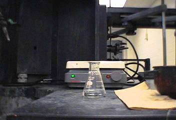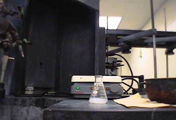turned on all the way and the flask is clamped down. The crystals will be