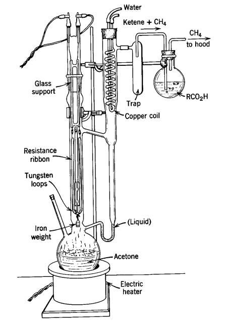 There are two proven working ways to accomplish the thermolysis of acetone to ketene in acceptable yields: